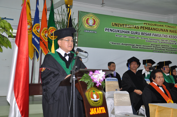 In his scientific oration Prof. Dr. med. dr. Frans Santosa, SpJP, FIHA explained about "The Role of Non-Invasive Angiology in Maintaining and Maintaining the Flexibility of Blood Vessel Walls". Angiology is the study of arterial, venous and lymphatic vessel disease. Because arterial disease is seen as a true "domain" of blood disease. The reason for taking the title of this inauguration speech is because to socialize more non-invasive Angiology Science, both in medical science circles and to the general public.