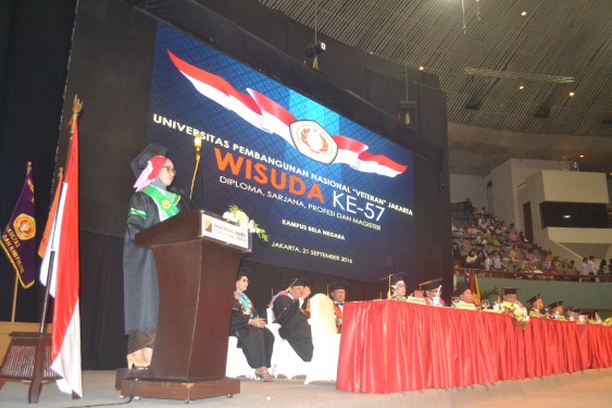 21 september 2016, UPN “Veteran” Jakarta menggelar perhelatan besar yaitu wisuda ke 57 dengan tema Kampus belanegara yang dihiasi ornament merah putih pada setiap pernak-perniknya.