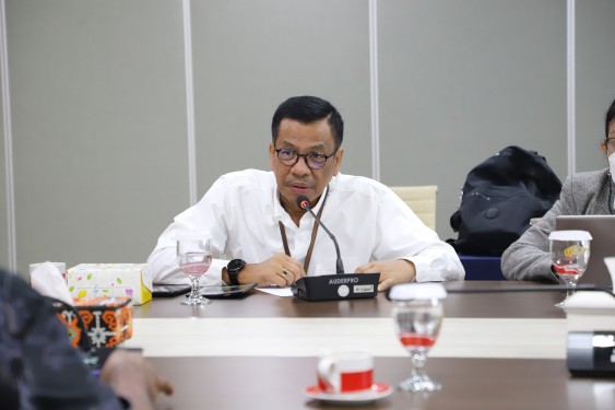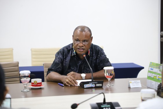 Prof. Prasetyo Hadi, Wakil Rektor Bidang Umum dan Keuangan UPNVJ bersama Kepala Biro Akademik Kemahasiswaan Perencanaan dan Kerja Sama beserta para koordinator bidang dilingkungan UPNVJ menerima Kepala Biro Akademik, Umum dan Keuangan beserta jajaran dari UNCEN. (13/9)