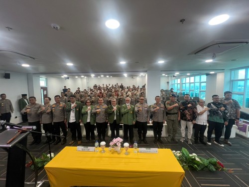Turut hadir Kapusdokkes Polri Irjen Pol dr. Asep Hendradiana, Sp.An-TI.,Subsp.IC (K).,M.Kes, Karumkit Bhayangkara Pusat Pusdokkes Polri Brigjen Pol. Hariyanto, Sp.PD, Sekretaris Pusdokkes Polri Brigjen Pol. Dr. Didiet Setioboedi, Sp.THT-KL,DFM, Para Kepala Biro Pusdokkes Polri dan Para Pejabat Utama Lainnya dilingkungan Pusdokkes Polri dan UPNVJ.