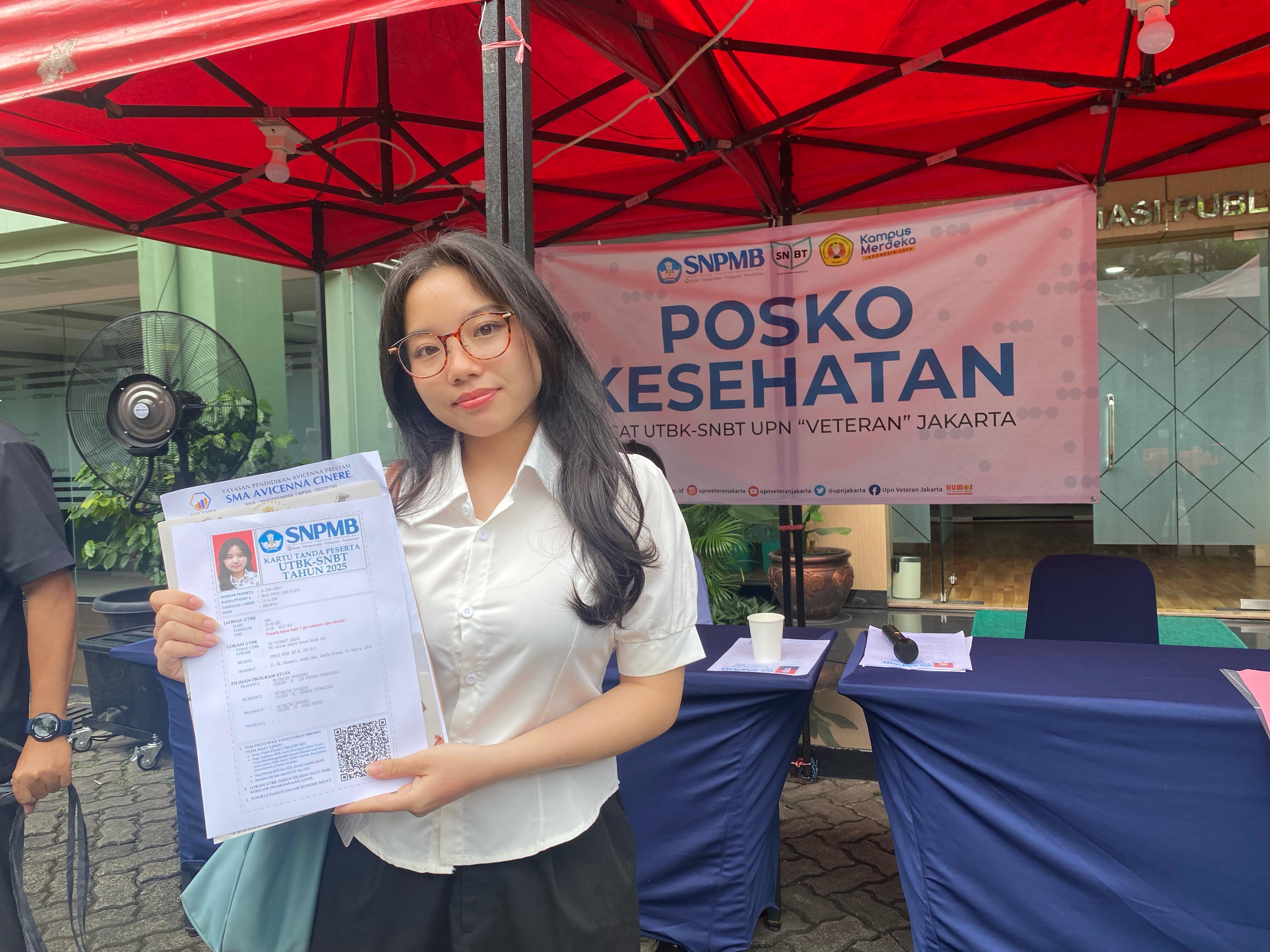“di pusat UTBK-SNBT UPNVJ pun tempatnya nyaman dan proses masuknya teratur. Jadi bisa fokus untuk mengerjakan ujian”, lanjutnya