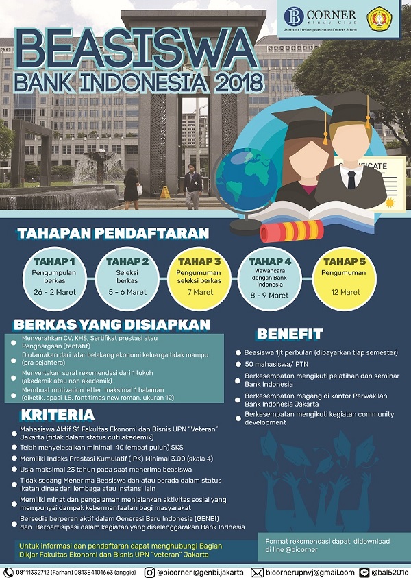 Are you an active FEB UPNVJ student aged 17-23? Are you ready to get the 2018 BANK INDONESIA SCHOLARSHIP?