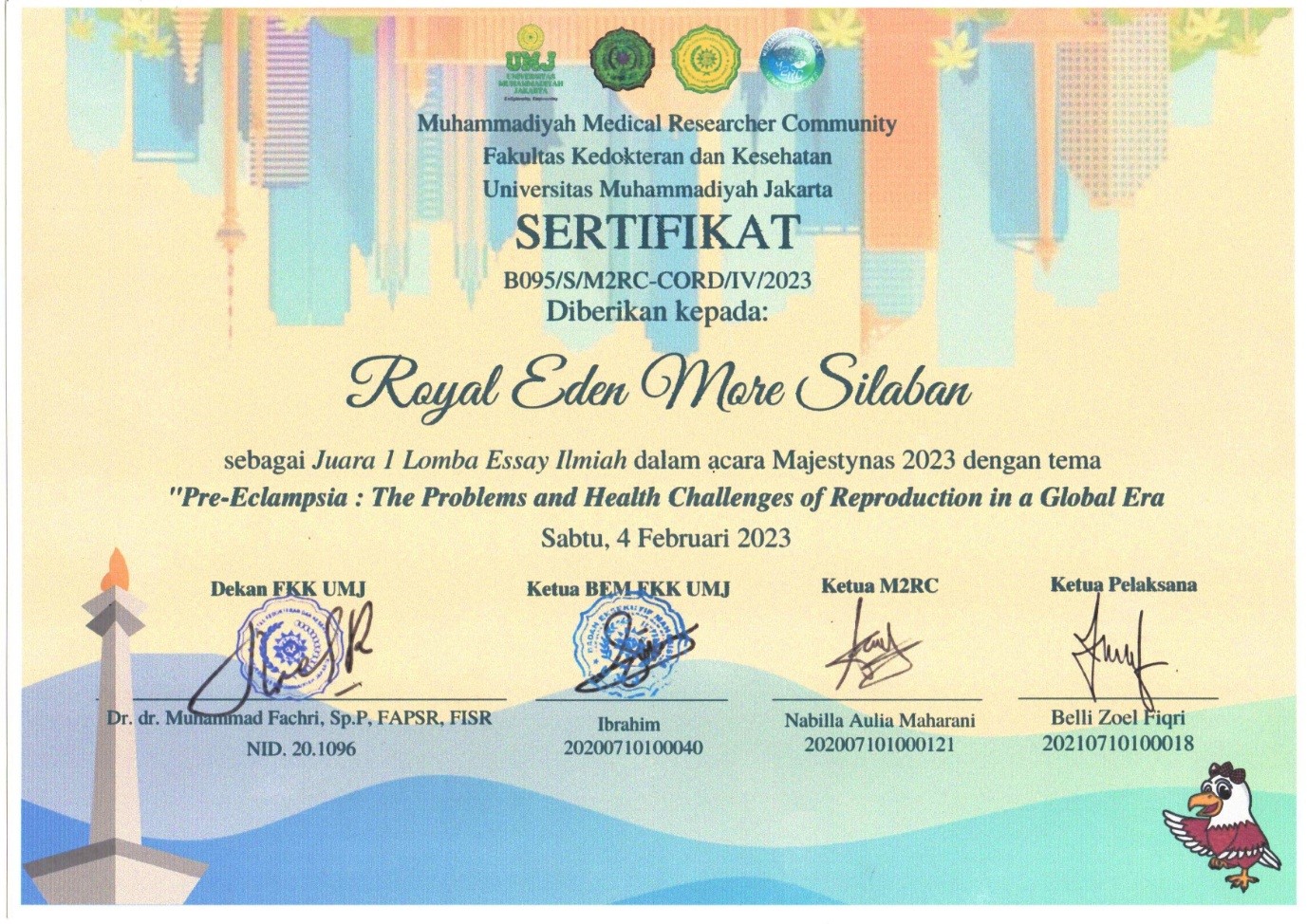 Royal berhasil meraih Juara 1 Esai Ilmiah pada ajang MAJESTYNAS (Muhammadiyah Jakarta Scientific Competition Tingkat Nasional) 2023. MAJESTYNAS diketahui merupakan sebuah acara ilmiah tahunan di Fakultas Kedokteran dan Kesehatan Universitas Muhammadiyah Jakarta yang diselenggarakan oleh Lembaga Ilmiah FKK UMJ yaitu Muhammadiyah Medical Researcher Community (M2RC).